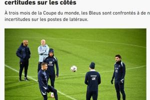 队报表示:高水平边后卫的培养在法国一直是个多年未决的课题。近年来,尤其是右后卫位置,法国队教练组不得不经常使用中后卫客串。而如今,距离世界杯仅剩不到三个月,已不是临时拼凑的时候,取而代之的是不确定性。
