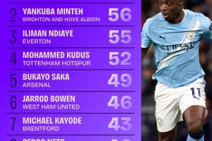1、多库(曼城):63次