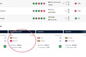 那又有吧友好奇了,那为什么国足在这次友谊赛中输球会被扣分,塞内加尔却没有因非洲杯决赛被判负扣分(显示为0分,而非负分)呢?