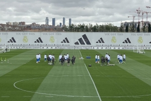 据记者Mario Cortegana报道,米利唐、阿拉巴、卡雷拉斯、塞巴略斯、贝林厄姆、姆巴佩、罗德里戈因伤缺席皇马训练,空中出现无人机,以帮助皇马收集训练数据。