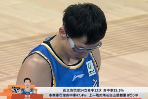 本赛季罚球命中率47.4%,上一场对阵吉林8罚0中