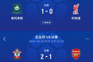 体育资讯04月05日讯 足总杯1/4决赛爆出冷门,英冠第7南安普顿2-1击败英超第1阿森纳,枪手止步足总杯8强。