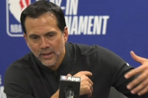 体育资讯4月15日讯 NBA东部附加赛九十名的争夺,热火加时126-127惜败黄蜂。赛后热火主帅斯波尔斯特拉接受了媒体采访,谈到了阿德巴约受伤的情况,以下为采访全文。