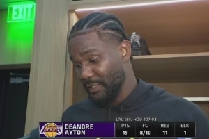 体育资讯4月19日讯 NBA季后赛G1,湖人在主场以107-98击败火箭。赛后,艾顿接受了记者采访,以下为采访全文。