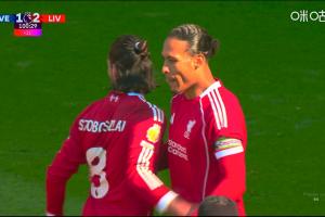 体育资讯04月19日讯 英超第33轮,埃弗顿vs利物浦。比赛第100分钟,范戴克头球破门,利物浦2-1再度领先!